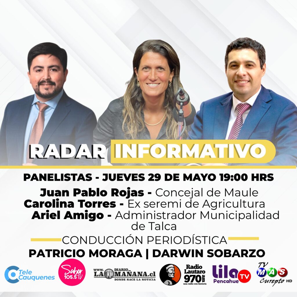 Termina tu día con «Radar Informativo» con toda la contingencia regional además del análisis de nuestros panelistas: Juan Pablo Rojas, Carolina Torres y Ariel Amigo.